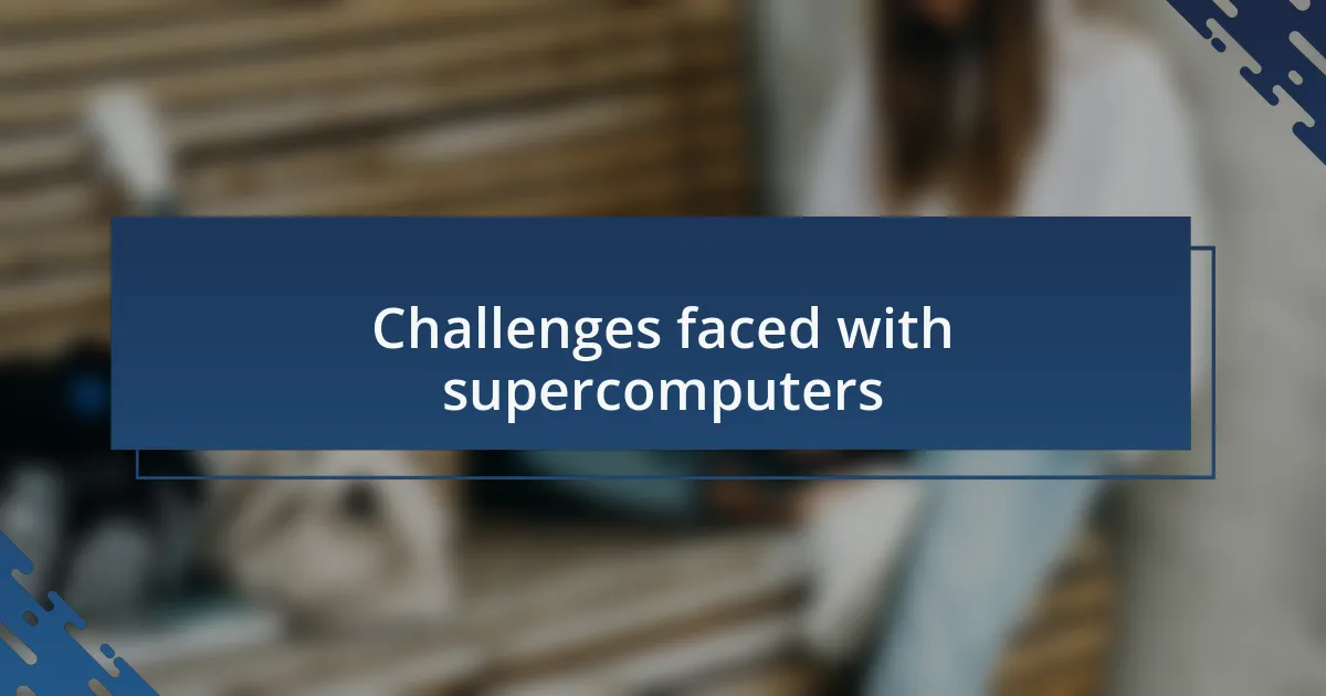 Utilizing supercomputers comes with its own set of challenges that can sometimes overshadow their remarkable benefits. One major hurdle is the steep learning curve required to harness their full potential. When I first navigated the programming intricacies, I felt overwhelmed and questioned whether I had the necessary technical skills. It was a real struggle, but I quickly realized that patience and persistence were key.