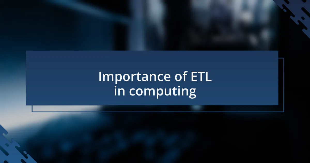 The role of ETL in computing cannot be overstated, as it ensures that the data used for analysis is not only accurate but also relevant. I still remember the moment when I first realized that without proper extraction, I was essentially working with a flawed foundation. It was a wake-up call that taught me how crucial it is to pinpoint reliable sources and establish a sound methodology for gathering data.