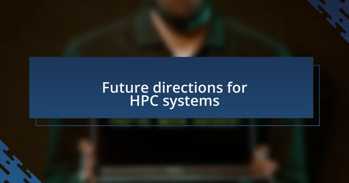 As I look to the future of HPC systems, one area that excites me is the integration of AI and machine learning into architectures. I recall a moment during a project when we began to incorporate AI-driven predictive analytics, significantly improving our workload distribution. It made me think: how far can we push these technologies to enhance performance and efficiency? The possibilities seem endless as we blend traditional HPC with cutting-edge AI techniques.